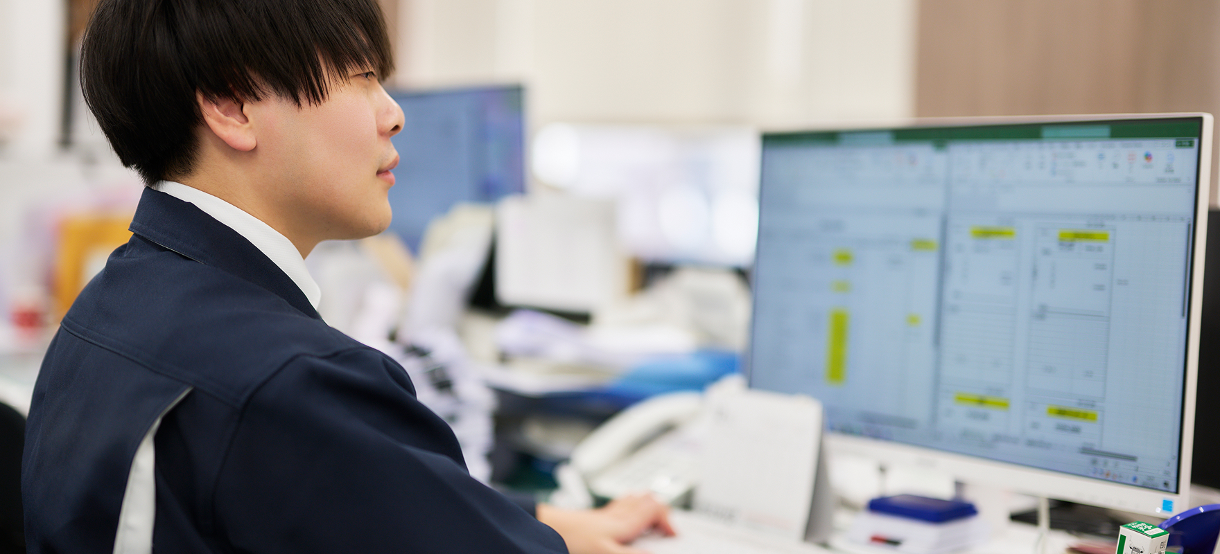現在は主に、仕入れ先への支払いや経費精算などの「出金管理」と、銀行口座の「入金管理」を担当しています。請求書をチェックし、期日までに正確に支払手続きを行うことが基本の業務です。 また、総務的な役割として、営業会議で使用する売上実績の集計や資料作成も行っています。 営業担当から「このデータが欲しい」と急な依頼が来ることもありますが、要点を汲み取り、スピーディーに対応することで「ありがとう」と言ってもらえると嬉しいですね。